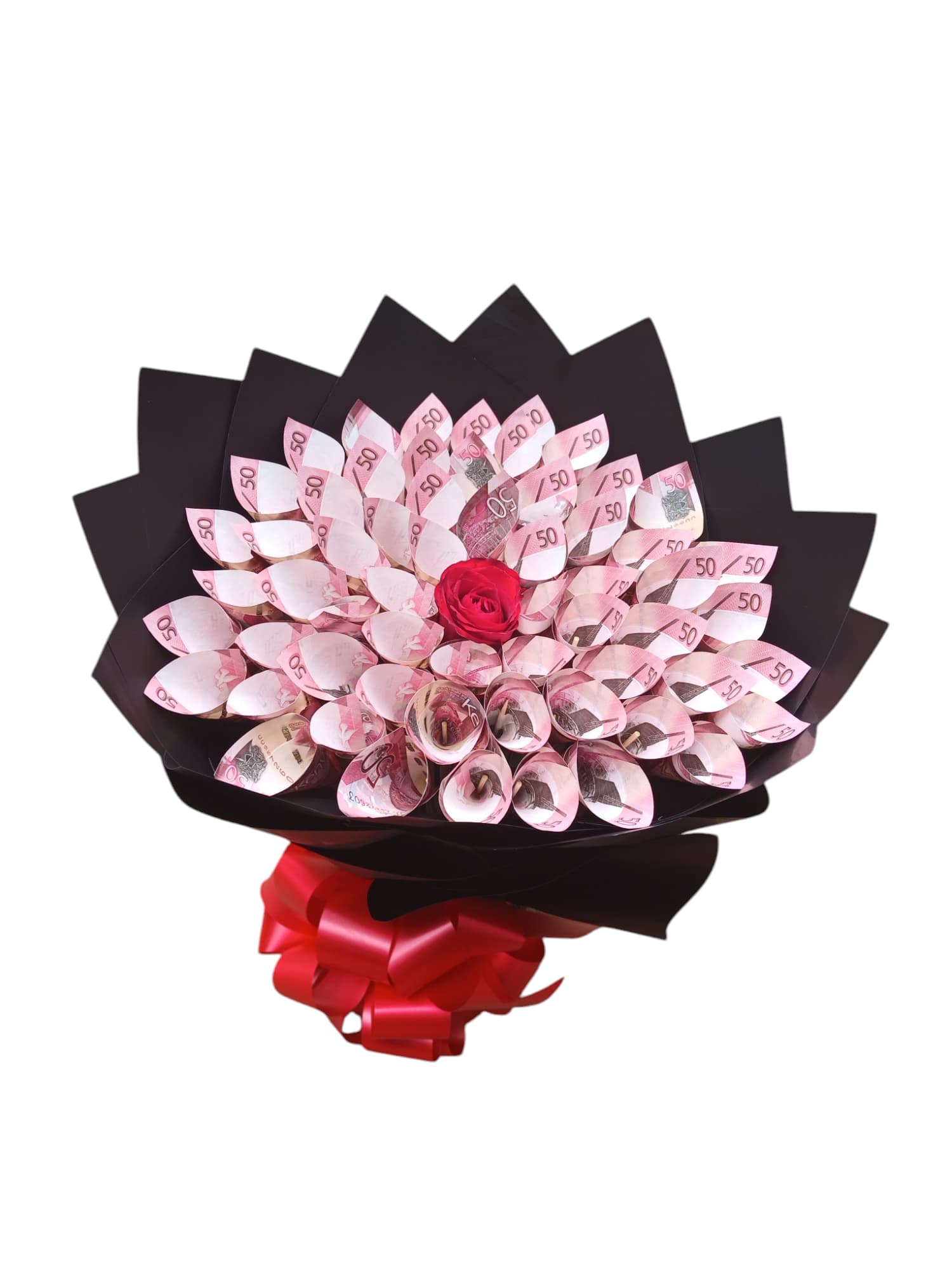 A charming money bouquet featuring Ksh 3,000 elegantly arranged in 50-shilling notes—perfect for a thoughtful and unique surprise